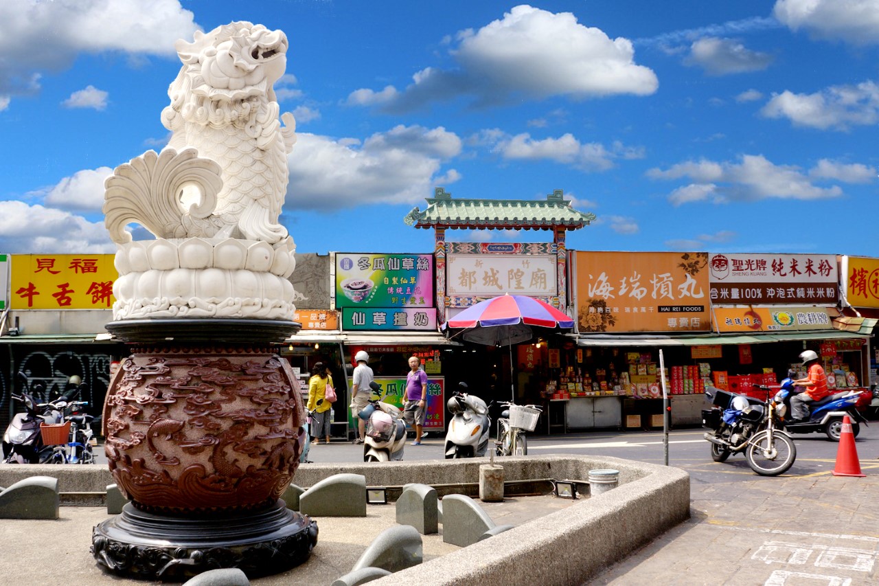 新竹城隍廟(都市の守り神を祀る廟)は清の乾隆13年(1748年)に建立され、当時としては廟宇の規模が台湾最大でした。光緒17年(1891年)、新竹城隍廟を厄除けの儀式会場とすることが決定されたことから「都城隍、威霊公」に封され、当時の台湾で唯一の全国的な城隍廟になりました。のちに山賊退治に霊験があったということで、光緒帝から「金門保障」の扁額を賜り、台湾で地位が最高の城隍爺(都市の守り神)になりました。城隍廟は建築規模が壮大で、三殿式の方正な区画で、雄壮な建物、華麗な彫刻、三川殿と三迭式の屋根を特徴としています。門前のマーケットも新竹の特色の一つです。売られているのは、新竹の有名なビーフンと肉団子、さらに潤餅(具入りの餅)、肉燥飯(肉そぼろごはん)、スルメスープ、仙草茶、冬瓜茶などが観光客に喜ばれます。