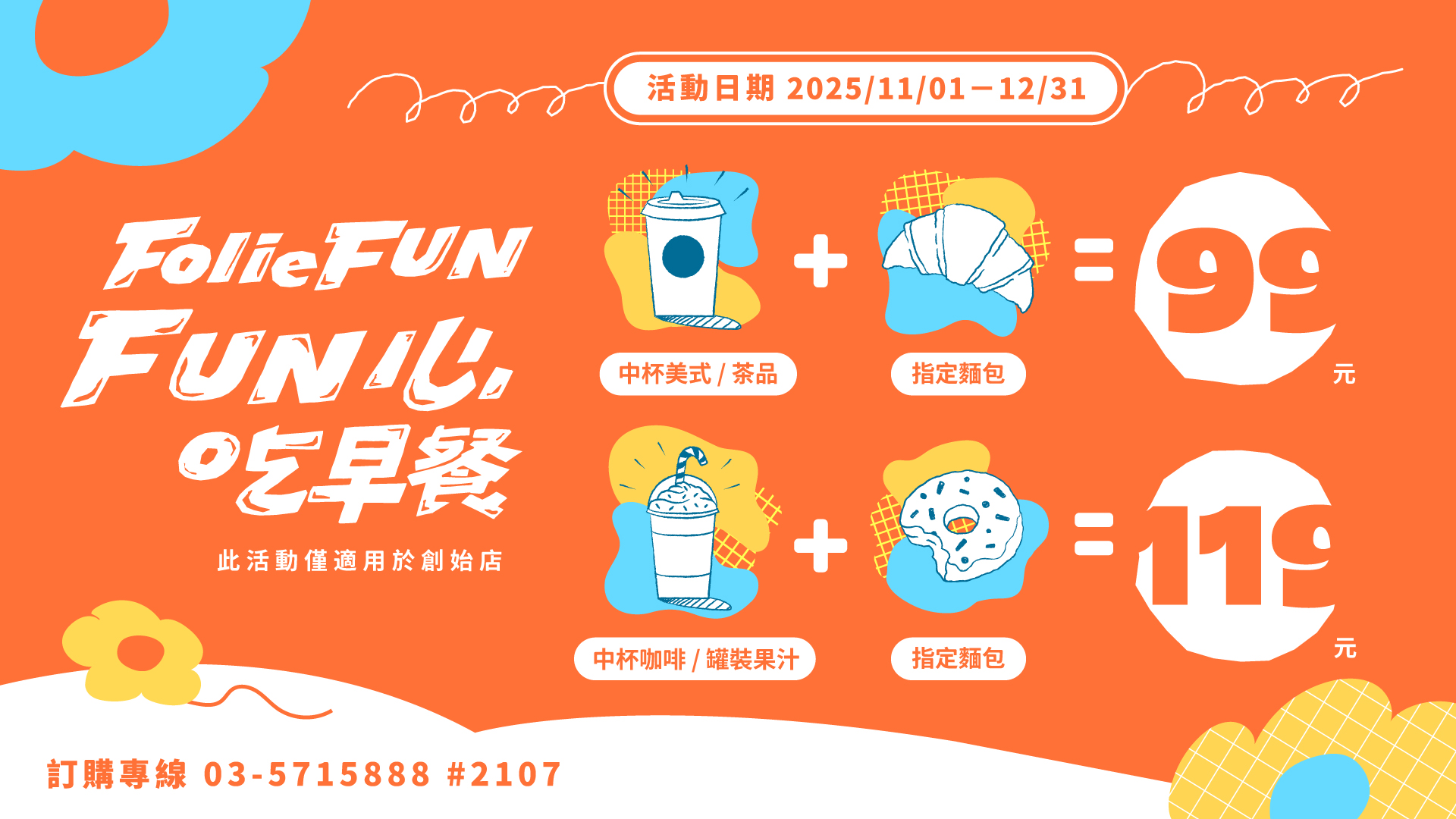 [活動說明] FUN心早餐-「飲品」+「麵包」享優惠!